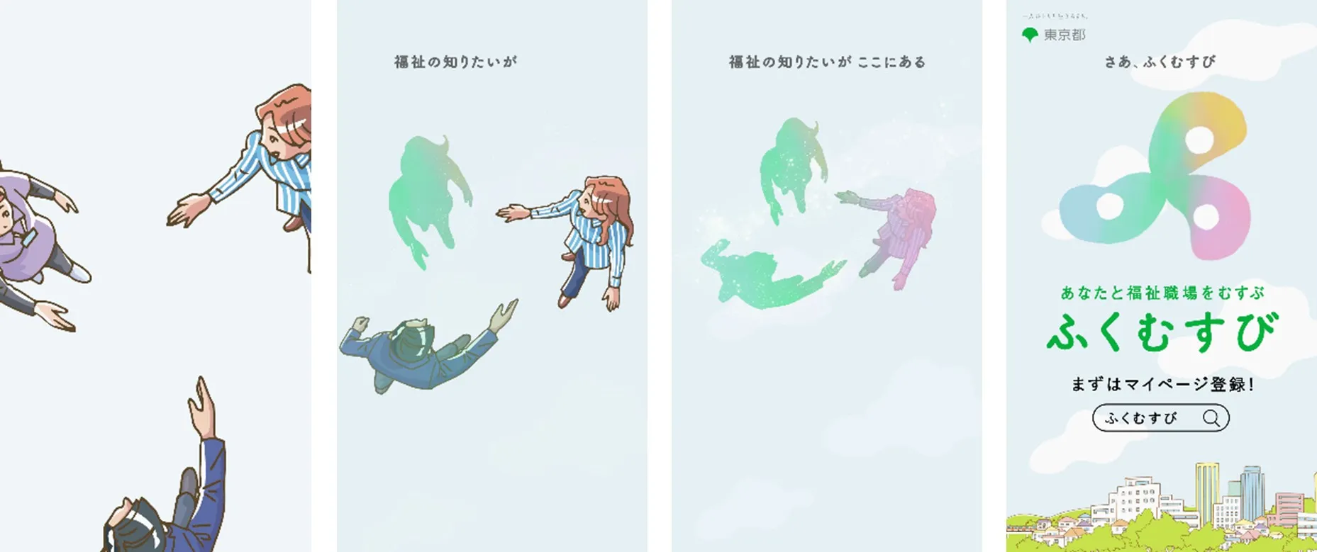 「ふくむすび」とは、あなたに必要な東京都内の福祉職場に関する情報が見つかるサイトです。