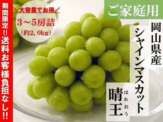 【ご家庭用】シャインマスカット 3~5房詰 岡山県産 9月上旬頃~10月上旬発送