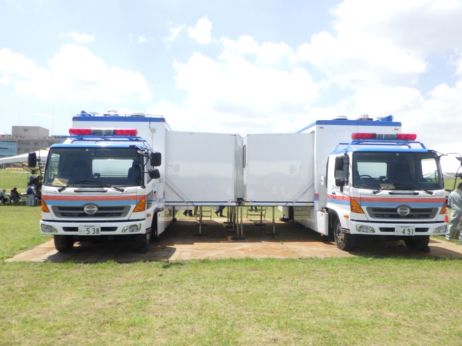 パトカー、消防車はもちろん、災害時に活躍する車両が勢揃いします。当日は、TVドラマ「ブルーモーメント」で使用された特別災害対策本部車(国土交通省)も展示します。