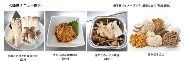 フェアでは、生産量一位の長野県産「えのきたけ」「ぶなしめじ」「エリンギ」に「なめこ」を加えた4種類のきのこをふんだんに使用した限定メニューを提供します。