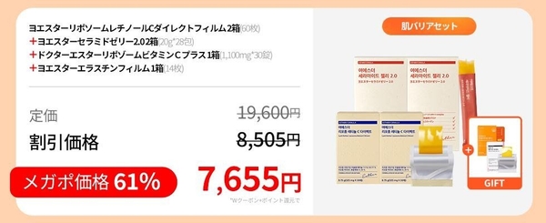 スペシャルイベント④ メガポ限定!「レチノールフィルム2箱」&「セラミドゼリー2箱」セット購入時、追加で「ビタミンCプラス」1か月分を1箱無料プレゼント!
