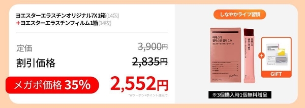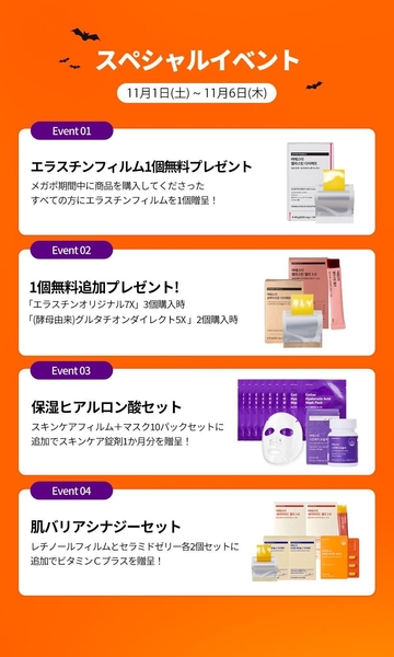スペシャルイベント① 11月メガポ特別企画!期間中に商品を購入してくださった全員にエラスチンフィルムを1箱無料プレゼント!