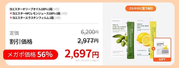 ヨエスターオリーブオイル100%とヨエスターNFCレモンジュース100%のセットがメガポに新しく登場。本来の豊かな栄養素材を生かした使い心地で、日々の食事に取り入れやすいシンプルさが魅力です。朝の目覚めにすっきり、そのまま1袋で簡単摂取可能。セット内訳の2商品は、それぞれ使い勝手の良さを追求したコンパクトサイズ。商品の素材を最大限に活かしたありのままの香りと味をお得にお楽しみください。
