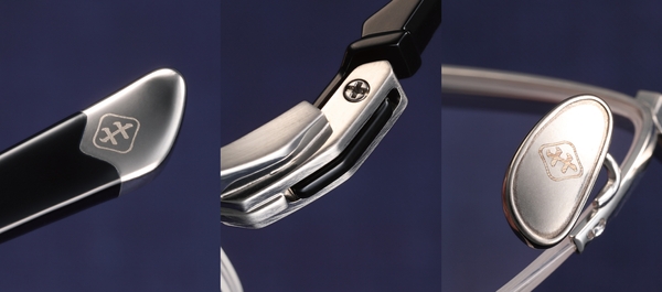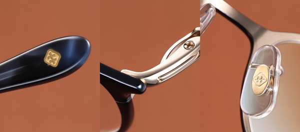 バチ先には純チタン製のブランドロゴ入りメタル飾り・鼻パッドは同じくブランドロゴ入りメタルパッドを採用。高級感を演出します。