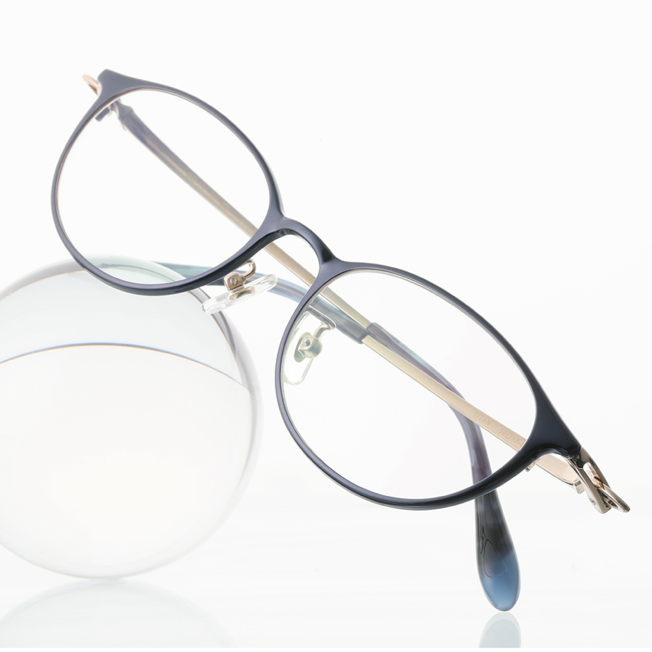 ファンデーションがつきにくく、ズレにくいクリアで高級感のある鼻パッドを採用。U字バネとβチタンを採用し、しなやかなかけ心地を実現します。
