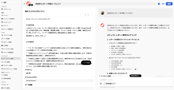 業務内容や目的を入力するだけで、最適なAIエージェントを自動生成することが可能になります。
