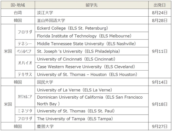 国際学部では、現地の受け入れ態勢が整ったことに伴い、国際学部生542人が、令和4年(2022年)8月24日から順次、米国、台湾、韓国での留学に出発します。