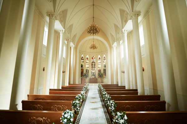 梅田・なんばから7分。ヨーロッパの教会を思わせる独立型大聖堂のたたずまいは、道行く人々をも魅了するほどのスケール感。本格派ゴシック様式の堂内では、1800年代イタリア製のステンドグラスと全長21mのバージンロードが荘厳な雰囲気を醸します。 専用のゲートを抜けると、それぞれ魅力の異なる2つの貸切邸宅が。荘厳なセレモニーの後も場所を変えることなく華やかでアットホームなパーティをお楽しみいただけます。自然光が降り注ぐガーデンを眺めながら、美食を愉しむ1日をお過ごしいただけます。