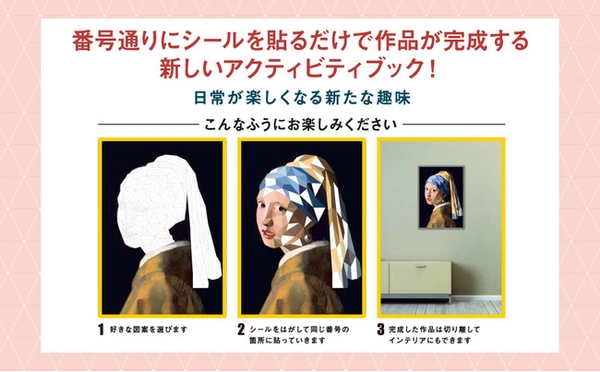誰もが知る名画を土台にした10 点のポリゴンアート作品に、シールを貼りつけて完成させるアクティビティブック。