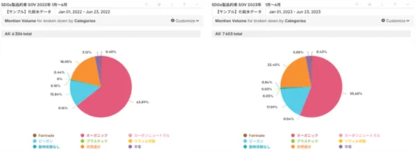 ダッシュボード:化粧品のSDGsとサステナビリティに対する投稿量および傾向の一覧