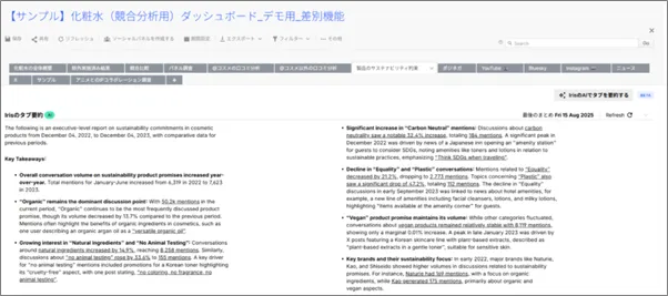 ● 「Irisタブ要約」の利用イメージ1:化粧品メーカー