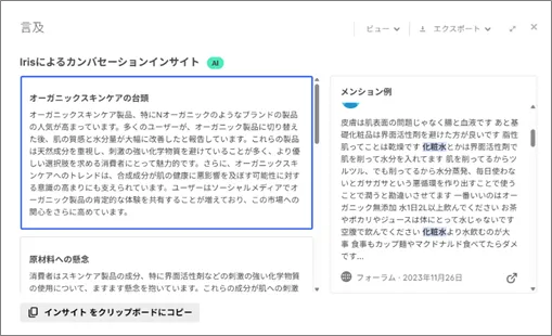 ブレインパッド提供の「Brandwatch」に、 Google Gemini を活用したダッシュボードAI要約機能「Irisタブ要約 (ベータ版)」を実装