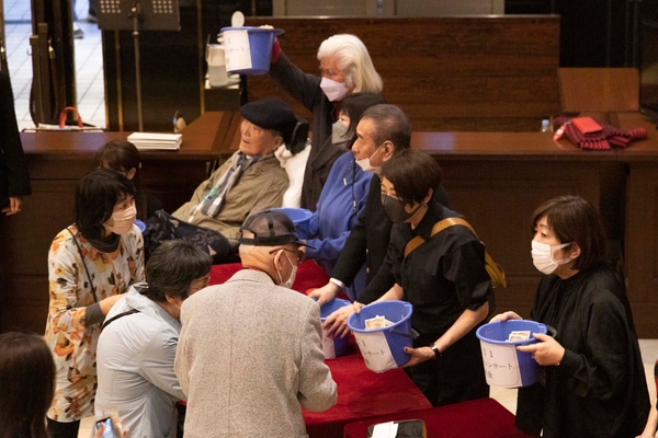 いよいよ終盤。坂本冬美はボロの名曲「大阪で生まれた女」のカバー。オーケストラの演奏に乗せて、ゆったりと歌い上げた。続いては六本木男声合唱団ZIG-ZAG。ステージの後方、パイプオルガンの前の席に座っていたメンバーたちがマスクを取り、そのまま客席から見事なハーモニーを聴かせた。歌った曲は、三枝成彰の「死者は哀しみの向こうで待っている」(オペラ『Jr.バタフライ』より)で、作詞は作家の島田雅彦によるもの。
