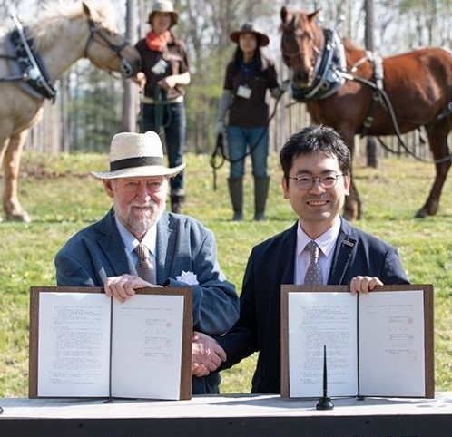 C.W.ニコル氏とサンクゼールの創業者である久世良三は長年親交があり、互いにビジョンを共有しながら、将来の夢を語り合う仲でした。長野県北信地域の豊かな自然を守り、未来へ貢献していきたいというサンクゼール代表取締役社長・久世良太の思いの下、2019年5月にはオフィシャルスポンサー契約を締結しています。