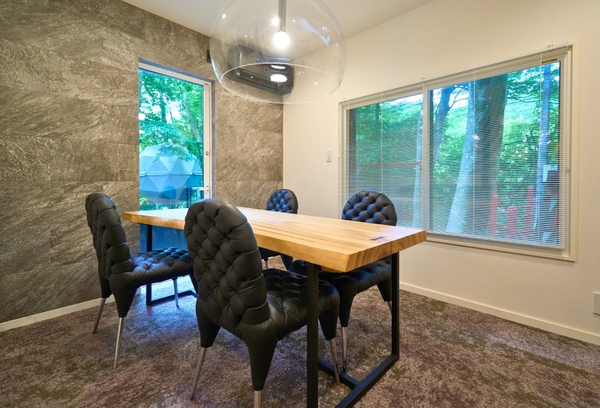 当施設は、箱根の高原リゾート仙石原の静かな森に佇む一棟貸別荘で、「Kunsthaus(クンストハウス)」とはドイツ語で「美術館」を意味します。美術館に隣接する立地に似つかわしい、アートのように洗練された現代的デザインの室内は、トーヨーキッチンのシステムキッチンや、イタリアのインテリアブランド「Kartell」の家具や照明を中心に、素材と質感にこだわった上質なインテリアで統一。自然光が注ぐサンルームでは、ご家族やご友人たちとゆったりとした時間をお過ごしいただけます。さらに、箱根の源泉である大涌谷のかけ流し天然温泉の浴室では、窓から森林を眺めながら温泉を楽しむことができます。日常生活を離れ、箱根の自然と温泉を満喫しながらリフレッシュするプライベートな滞在をお楽しみいただけます。