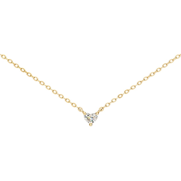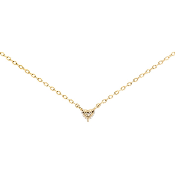 小さなハートシェイプダイヤモンドを使用した一粒ネックレス。シンプルに3点の爪でセッティングし、ダイヤモンドが繊細にきらめきます。裏側にもゴールドのハートマークをこっそりと忍ばせ、コンセプトである“心からの純粋な想い”を表現しています。さりげないハートが甘すぎず、どんなシーンでも身に着けられるデザインです。