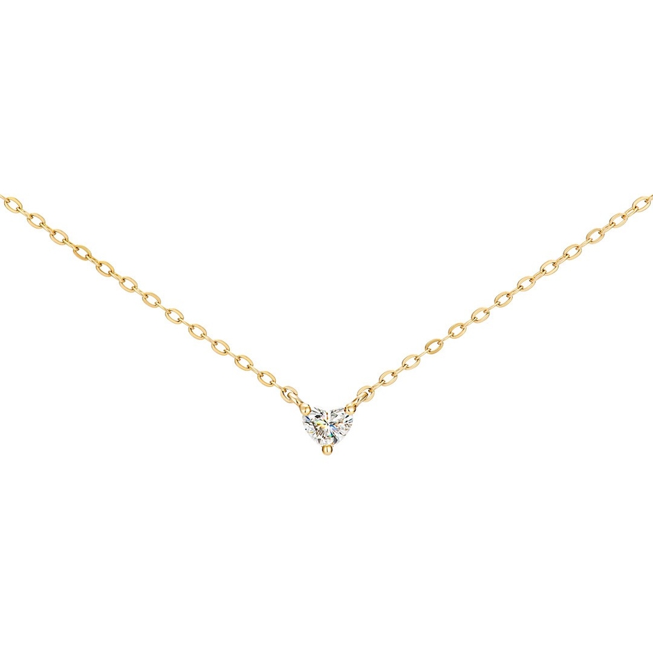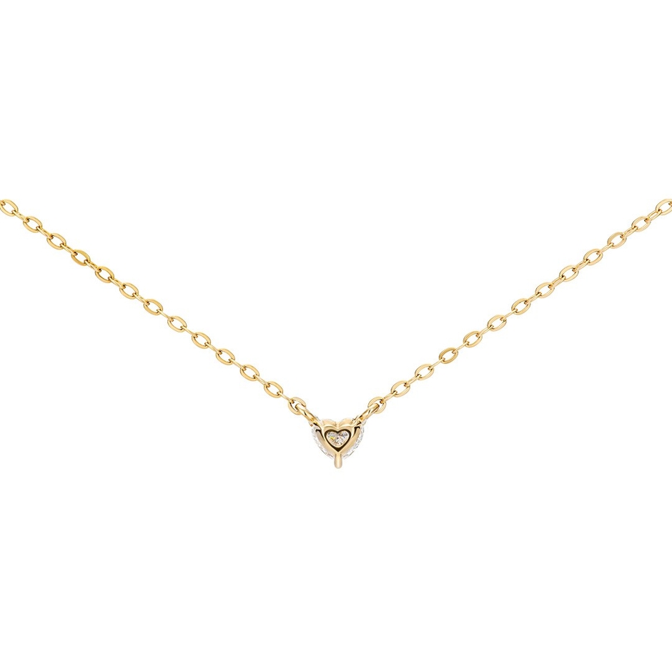 小さなハートシェイプダイヤモンドを使用した一粒ネックレス。シンプルに3点の爪でセッティングし、ダイヤモンドが繊細にきらめきます。裏側にもゴールドのハートマークをこっそりと忍ばせ、コンセプトである“心からの純粋な想い”を表現しています。さりげないハートが甘すぎず、どんなシーンでも身に着けられるデザインです。