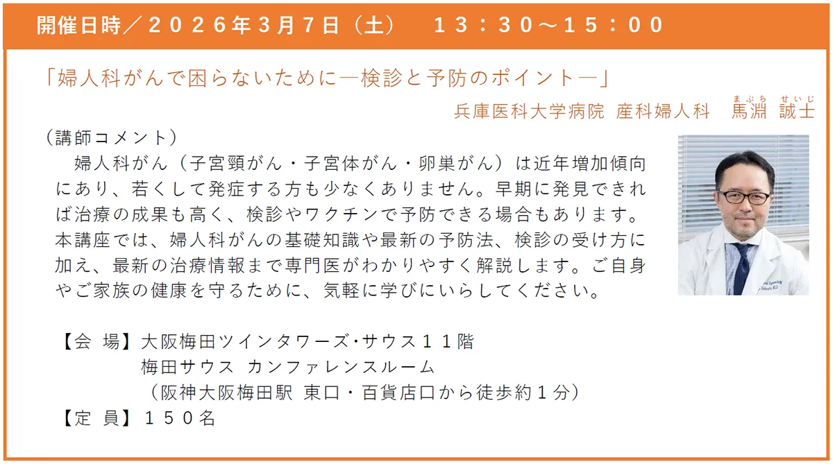 【3月7日(土)】婦人科がんで困らないために―検診と予防のポイント―