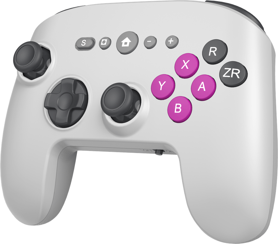 【特徴1】レトロゲーム機風カラーを採用した、天面6ボタンのSwitch2用無線コントローラー