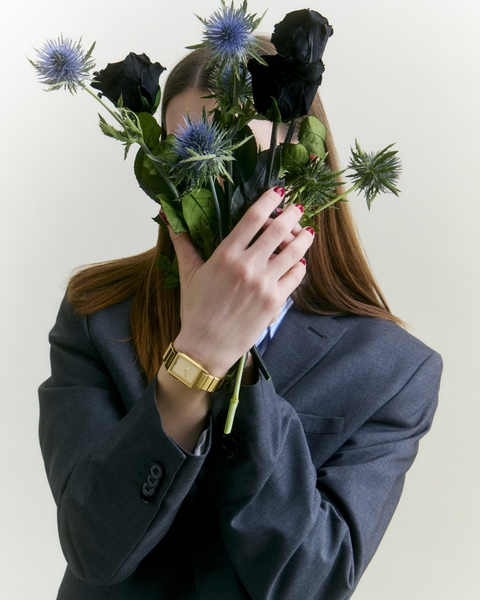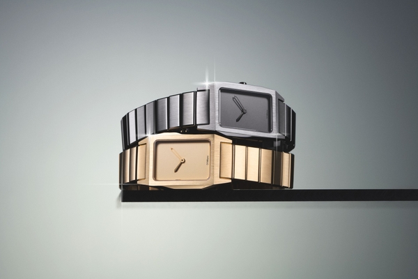 ダイヤルの中央には繊細なサークルブラッシュ仕上げを施し、外周には光の角度によって表情を変える斜めのリングを配置。柔らかく面取りされたスクエアケースは、建築的な精密さとエレガントなフォルムを兼ね備え、腕元に洗練された印象を与えます。