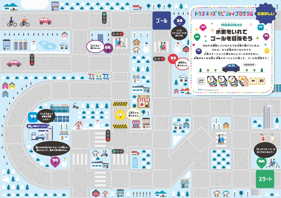 トヨタ自動車が新たに開発した学習コンテンツで、クルマの活躍シーンとプログラミング体験を関連づけたミッションに挑戦する内容です。