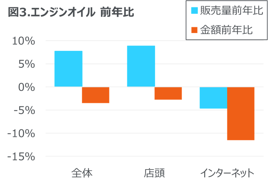 ・ エンジンオイルは販売量前年比8%増と堅調。量り売りでは同18%増に至った。