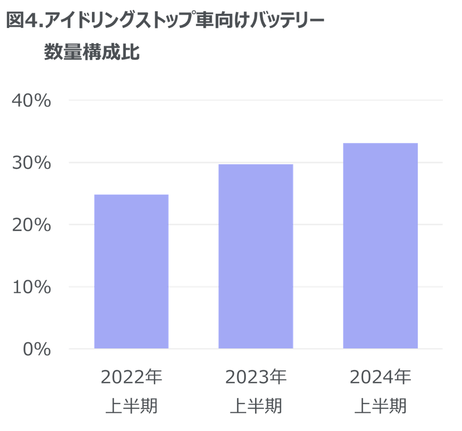 ・ アイドリングストップ車向けバッテリーの拡大が見られ、数量構成比は33%に達した。