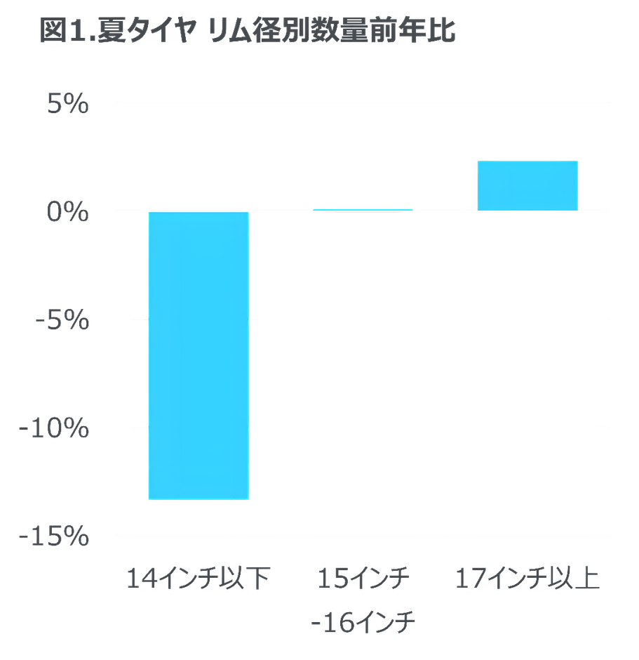 ・ 夏タイヤ全体では数量前年比5%減と落ち込んだが、17インチ以上では同2%増と前年を超えた。