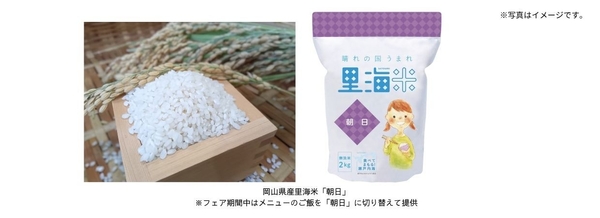 フェア期間中、メニューのご飯はすべてJAグループ岡山「瀬戸内かきがらアグリ事業」の一環として瀬戸内海産牡蠣の殻を田んぼにまき牡蠣殻のミネラルで生産された里海米の「朝日」を提供します。