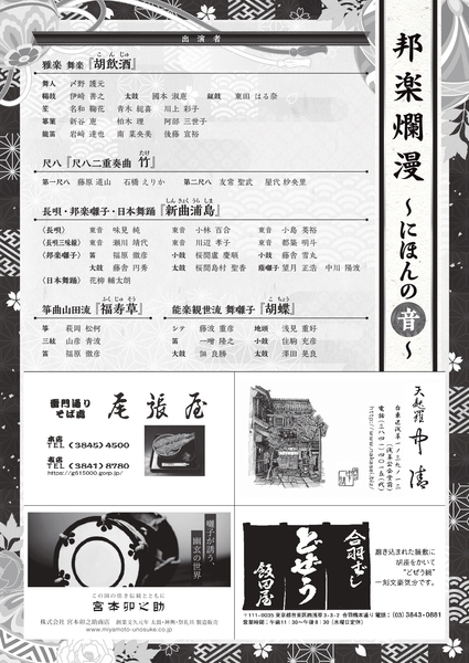 本年は、「にほんの<音>」をテーマに邦楽曲の数々をお届けいたします。