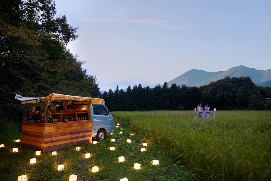那須の山々を望む田んぼで開催されている、風にそよぐ稲穂を眺めながら楽しむ「田んぼビアガーデン」が8月31日限定で「野菜づくしのビアガーデン」になります。カゴメのトマトジュースを使用したビアカクテル「レッドアイ」や、カゴメ野菜生活100を使用したオリジナルジュース、旬の夏野菜を使用した野菜のピクルスを提供します。アクティビティ施設「POKO POKO(ポコ ポコ)」前の焚火台では焼きトウモロコシを楽しめます。