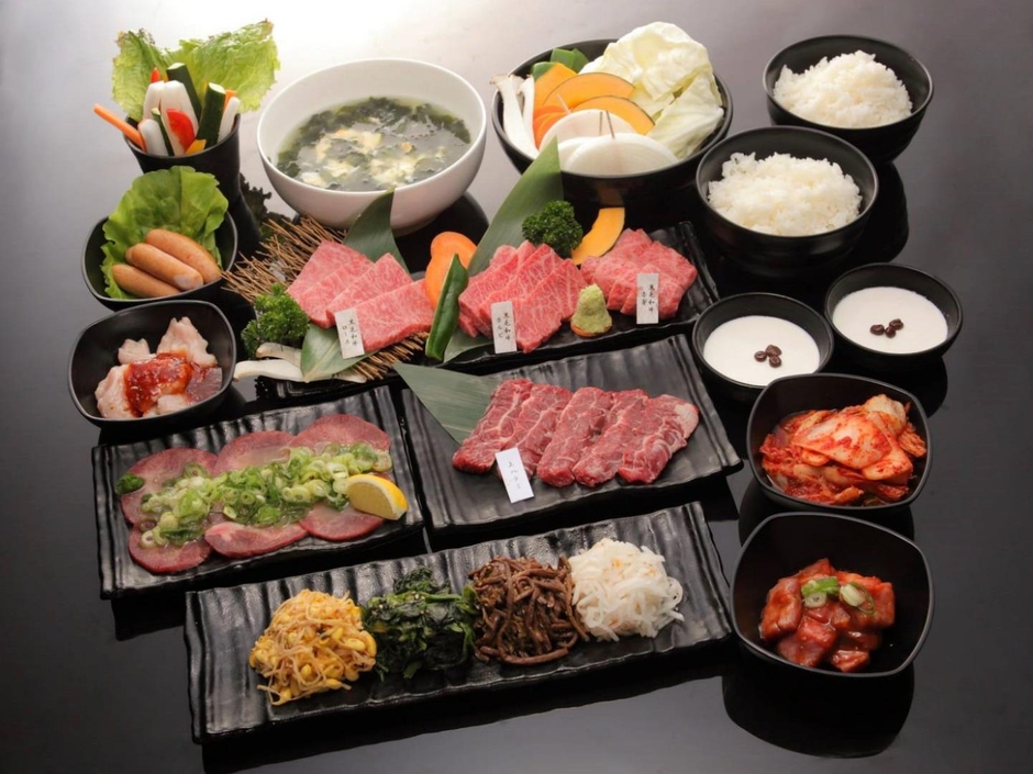 黒毛和牛3品を含む全16品。白菜キムチ・七つ星パリパリサラダ・銀しゃりがおかわり自由!
