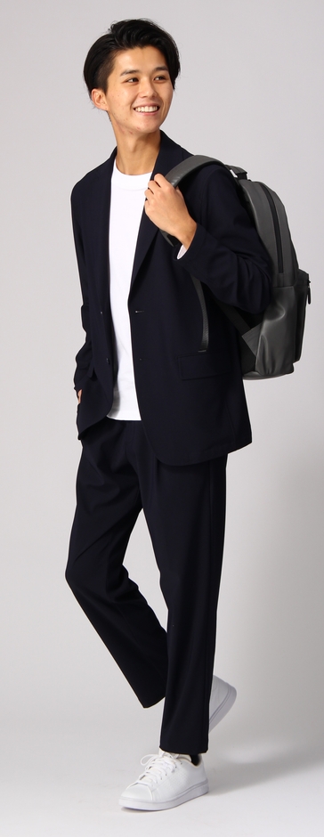 スーツ生地は、旭化成株式会社のストレッチ繊維「ROICA®(ロイカ)」を使用したニット生地で、縦・横の両方向への高い伸縮性が特徴です。一般的なスーツと比べて縦・横ともに6倍(当社比)のストレッチ性を誇るなど、抜群の動作性と解放的な着心地を体感できます。また、自宅の洗濯機で丸洗いが可能でシワになりにくいなどイージーケア性にも優れています。
