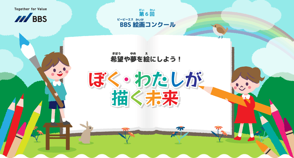 BBSは、次世代を担う子どもたちの創造力、表現力を育む機会の創出を目的とし、全国の小・中学生を対象に「BBS絵画コンクール」を開催しています。今回のテーマは「ぼく・わたしが描く未来」です。