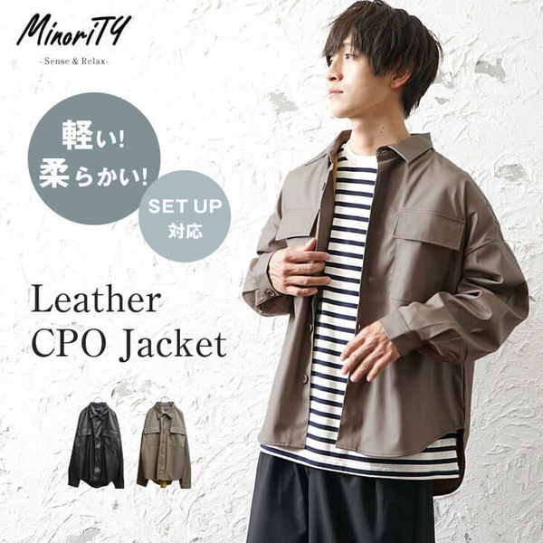 一般的に無骨で男らしい印象のレザージャケットをトレンドのゆったりスタイルに馴染むようアレンジ。