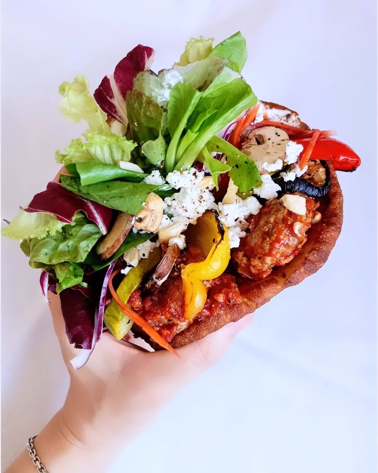 また、店主は、サックス奏者と画家の他、飲食店での調理経験も豊富で、特に野菜を使った料理には自信があり、今回のベルリンでの衝撃を受けたケバブサンドをさらにアレンジし、野菜を10種類使用したケバブサンドに仕上げております。
