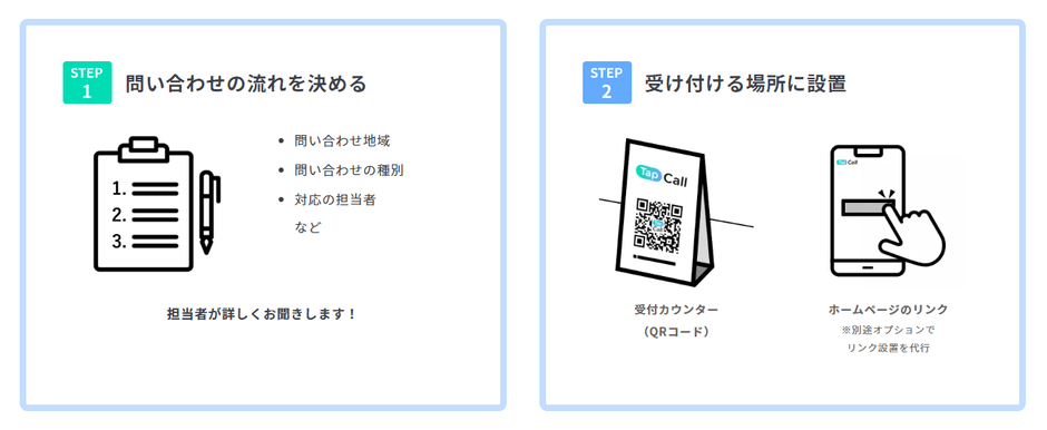 TapCallならたった 2つの手順で、オンライン接客・リモート相談を開始できます