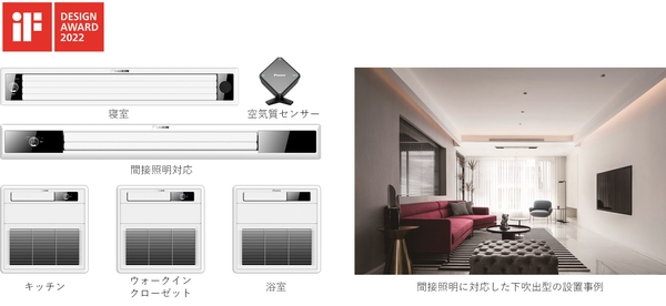 中国の高級住宅向けに、リビング、寝室、浴室、キッチンやウォークインクローゼットなどのあらゆる空間に適した機能を備え、温度、湿度、気流のバランスが取れた快適な空間を提供するマルチシステムエアコンです。中国で増加している間接照明を設置したリビング天井にも対応できるよう、スリムで下吹き出し型の室内パネルを設計し、より幅広いニーズに応えるラインアップを揃えました。また、それぞれの空間に最適なサイズと直線的な設計を取り入れたシンプルなデザインで、品位の高い仕上げにこだわりました。