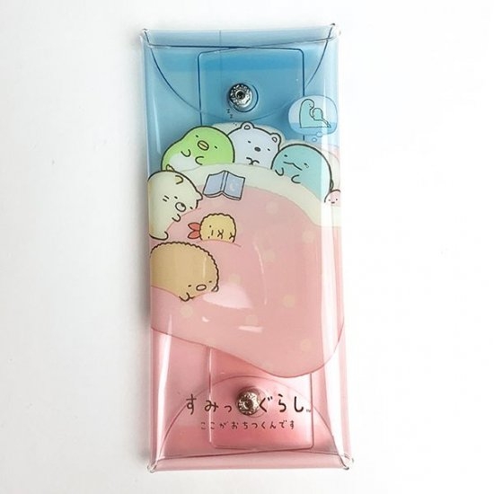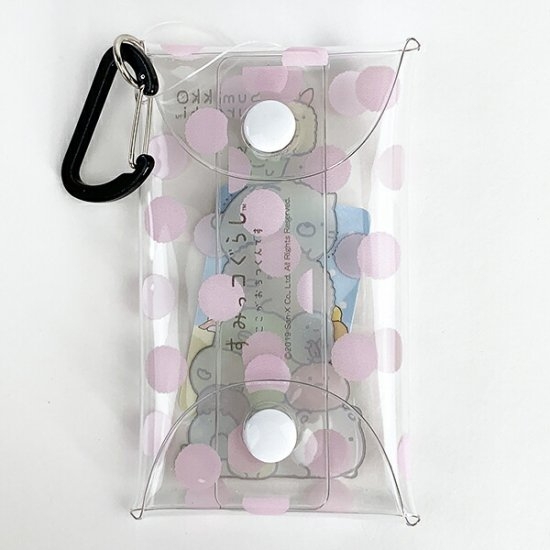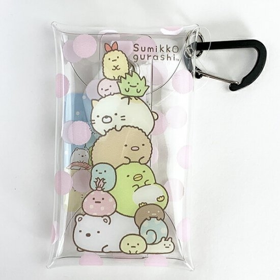 透明で中身が見える事でも人気のクリアマルチケースに、すみっコぐらしのデザインが仲間入りしました。人気の癒しキャラクターたちが大集合していて、背景にはピンクのドットも入っています。