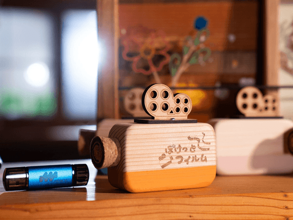 想い出の映像を、スマホで手軽に楽しめるUSBメモリー。それが『ぽけっとフィルム』です。 吉野杉の温かみが感じられる、フィルムカメラ型ケースに収めました。 想い出を、いつでも・どこでも・何度でも楽しめます。