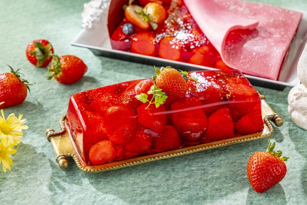妖精のベッドをモチーフにした、夢のようなゼリーテリーヌ。ぷるんとしたゼリーの中に苺の果実をたっぷりと詰めた、見た目にも可愛らしい一品です。