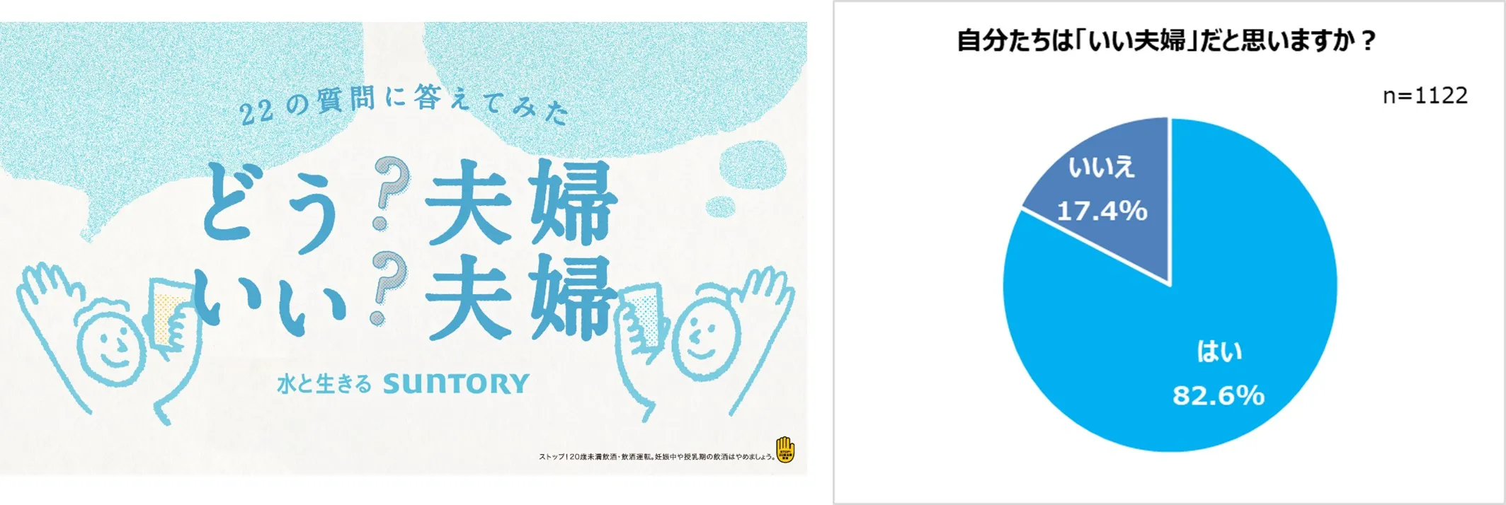 サントリーホールディングス株式会社は、11月22日の「いい夫婦の日」にあわせて、全国の20~50代の夫婦 計1122名(561組)を対象に、「どう?夫婦 いい?夫婦」調査を実施しました。