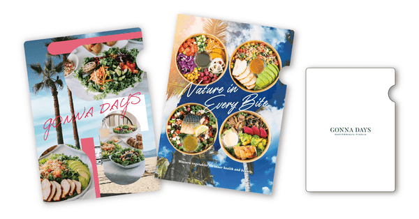 当日ご購入いただいたお客様で、GONNA DAYS公式LINEに新規友だち登録をしてくださった方へ、GONNA DAYSのルーツであるLAの世界観をPOPに落とし込んだオリジナルのクリアファイルを1枚プレゼント!