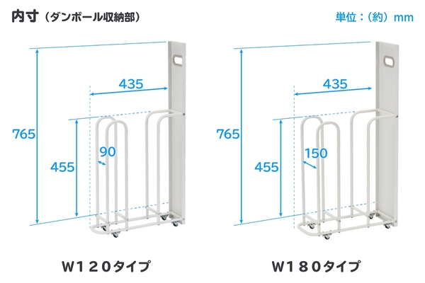※本体の奥行きサイズより大きいダンボールを収納すると、隙間スペースより奥行きがはみ出てしまう場合がありますので、ご注意ください。