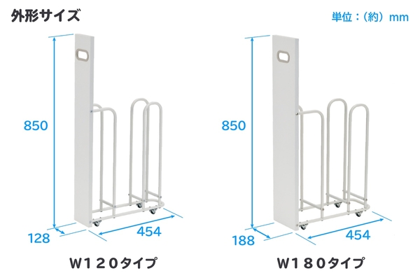 横幅(約)128mmの「W120タイプ」と横幅(約)188mmの「W180タイプ」の2サイズから選べます。
