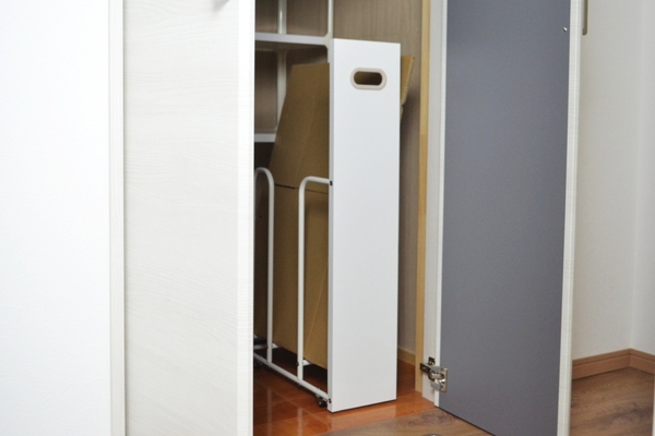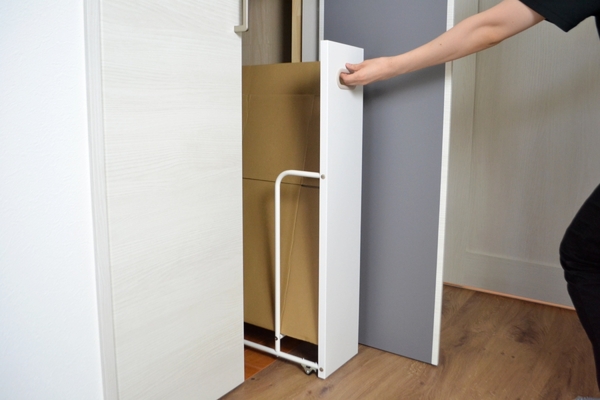 前面にある目隠しパネルで収納してあるダンボールが見えにくくなり、ゴチャつきを軽減できます。