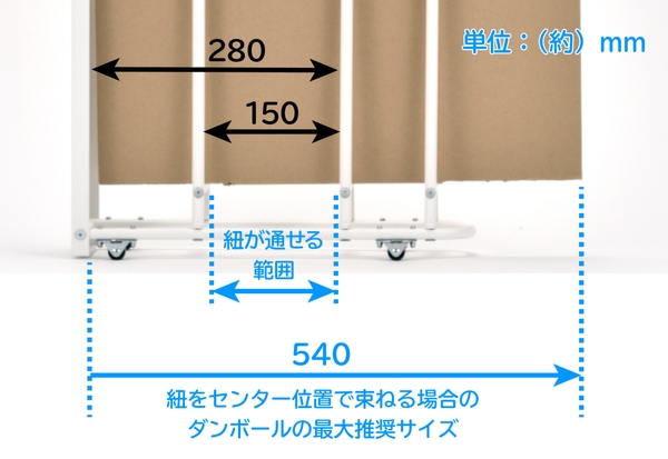 収納できるダンボールの奥行き最大推奨サイズは約540mmです。
