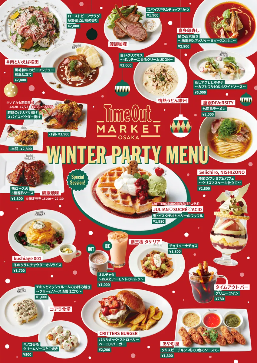 タイムアウトマーケット大阪では、この冬を思いきり楽しむシーズンイベント「WINTER PARTY」を開催します。人気シェフが手がける冬限定メニュー、気の合う仲間と盛り上がれるパーティープラン、そして心が弾むライブステージまで。