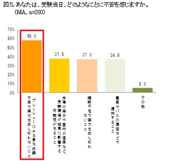 ■受験当日に不安なことの1位は「プレッシャーによる体調不良(58.0%)」