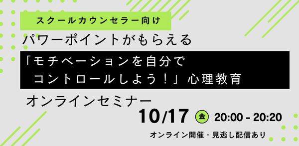 オンラインセミナー『【スクールカウンセラー向け】パワーポイントがもらえる「モチベーションを自分でコントロールしよう!」心理教育オンラインセミナー』を開催します